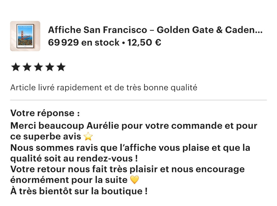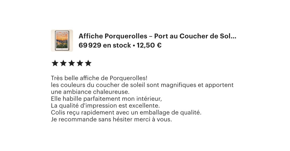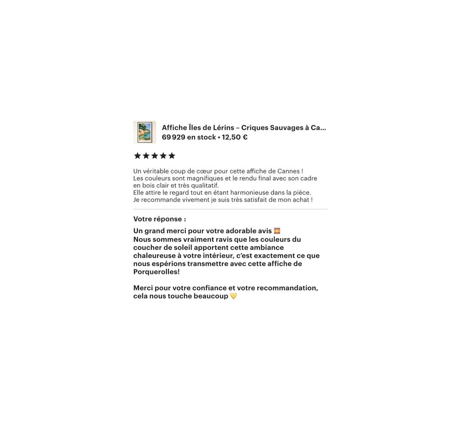 Les premiers retours nous touchent énormément. chaque message, chaque photo reçue et chaque note cinq étoiles racontent une affiche adoptée, accrochée et aimée au quotidien.
